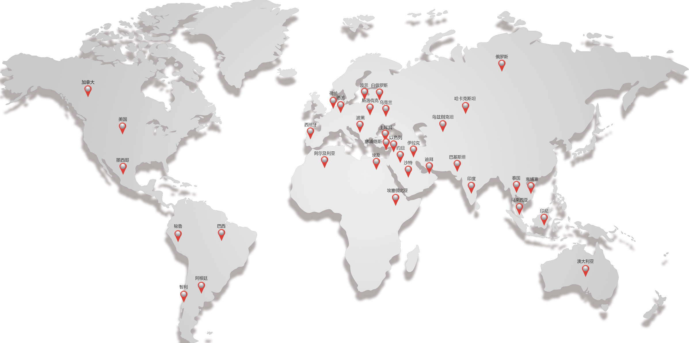 累計(jì)出口全球65個(gè)國(guó)家和地區(qū),包括美國(guó),俄羅斯,波蘭,墨西哥,加拿大,澳大利亞,英國(guó),東南亞以及印度等
